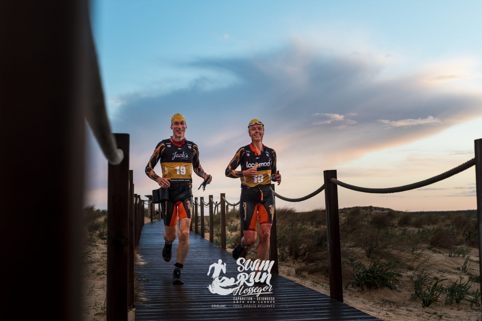 Grands événements Swimrun côte sud Landes Seignosse au printemps Fêtes de Tyrosse, Bayonne & Dax Les 1er et 2 Mai 2026 aura lieu la huitième édition du Swimrun Côte Sud Landes à Hossegor, Seignosse et Capbreton. Un évènement sportif et engagé pour un week-end inoubliable dans les Landes ! Le swimrun est une discipline très en vogue qui permet d’alterner des sessions de course à pied avec des sessions de nage en eau libre à l’océan, et au Lac d’Hossegor. L’avantage du swimrun côte sud Landes est qu’il propose sur 3 jours différentes distances pour toucher tous les publics, des plus novices aux plus chevronnés. L’Ambitieuse, 40 km en immersion au cœur du territoire Côte Sud Landes, entre Seignosse, Hossegor et Capbreton est un challenge hors norme dans un cadre enchanteur. Une course élitiste réservée aux équipes chevronnées ! L’Audacieuse, 20 km La Sauvage, 10 km La Rassurante, pour un parcours 100% au lac et canal d’Hossegor à marée haute sur 5 km. Un parcours idéal pour les débutants, famille, adolescents et/ou les nageurs moins à l’aise à l’océan. L‘Ambitieuse Challenge Multi Team : composée de trois binômes, vous vous diviserez les 40km du parcours, de quoi motiver vos collègues ou collaborateurs à prendre part à l’événement en portant haut les couleurs de votre entreprise un village d’animations et d’exposants avec buvette et concerts pour vivre 3 jours d’événement sportif et festif tous ensemble ! Les courses swimrun : La Kids → 1,6 km : swim 0,6 km / run 1 km La Rassurante → 5 km : swim 2,4 km / run 4,6 km La Sauvage → 10 km : swim 2,7 km / run 7,3 km L’Audacieuse → 20 km : swim 3 km / run 17 km L’Ambitieuse → 40 km : swim 7 km / run 33 km Voir le site officiel : infos & inscriptions le teaser de 2026