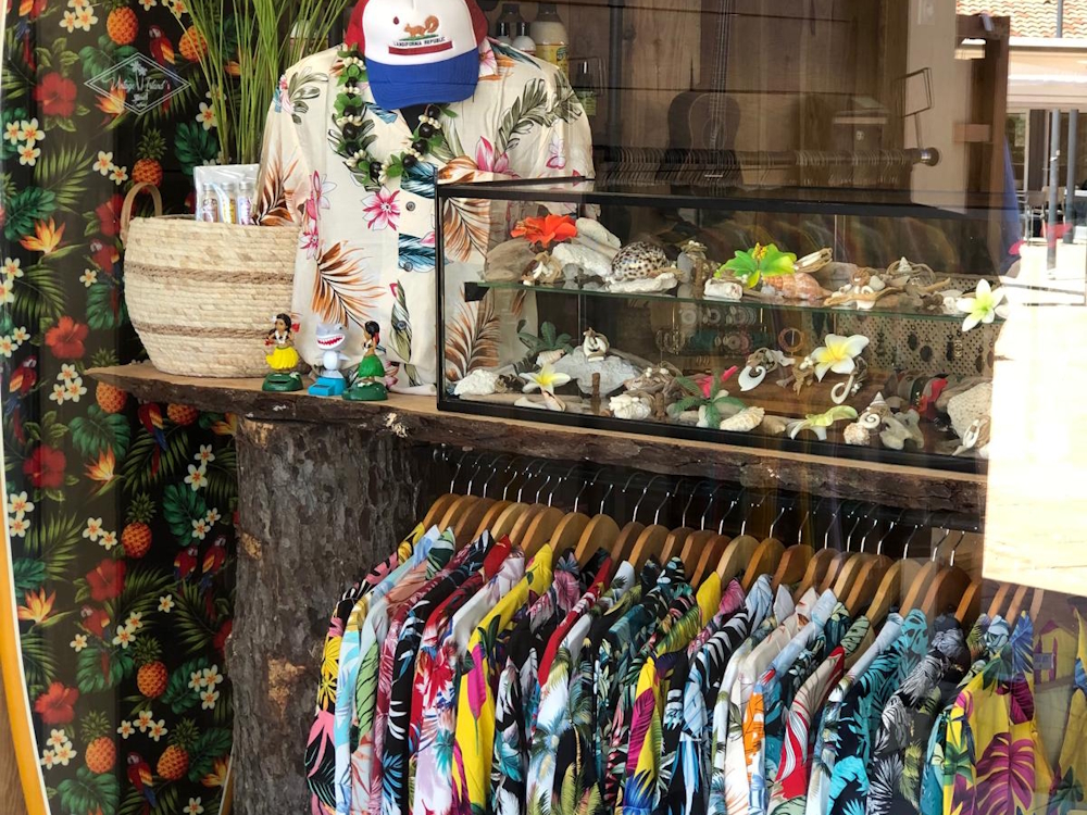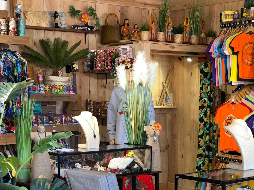 See all the pictures Previous Next Esprit des Îles Motivated and passionate about discovering different cultures, in particular the Polynesian culture which was the cradle of surfing, my travels to the most beautiful corners of the planet have enabled me to discover and select special objects. That's how Esprit des îles came into being in the early 2000s! Taking advantage of the craze for decoration and surf culture, Esprit des îles stands out for the character and originality of its products. In our shop and on our website, you'll find a wide range of swimwear, beach towels, flip-flops, tee shirts by Landifornia and Vintage Island's, Vintage Hawaiian shirts, fabric from Hawaii, Tahitian pearl jewellery, monoi and sun cream, hair accessories, costume jewellery and various decorative items based on Surf, VW, Tiki and Vintage culture. ISLAND SPIRIT, TRANQUIL SPIRIT! Read More Text... Close Opening periods From 04 April to 01 November 2026 Opening information Périodes, jours et horaires d'ouverture : - Avril, mai, juin, septembre, octobre : du mardi au dimanche - Juillet-août : 7j/7 de 10h à 23h